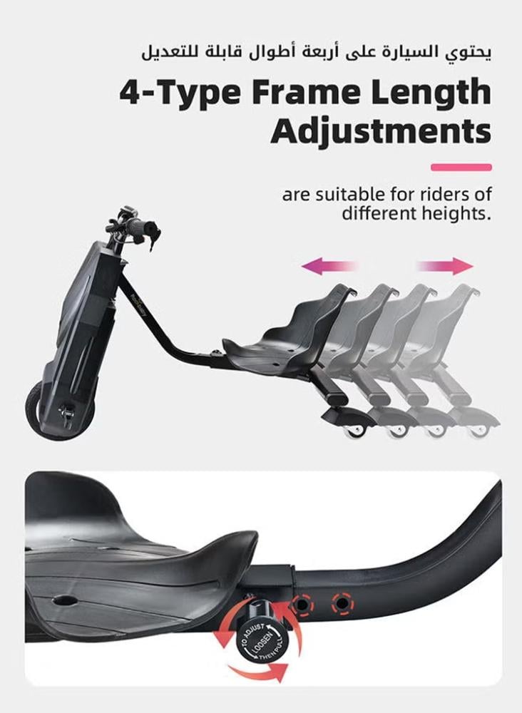 استمتع بتجربة قيادة ممتعة وآمنة مع سكوتر الدرفت الكهربائي من Fun Moment! يتميز هذا السكوتر بتصميم مدمج وأداء قوي يلبي احتياجاتك اليومية للقيادة بفضل محركها القوي بطاريته المتينة، ليمنحك تجربة مليئة بالإثارة مع مزيج من التكنولوجيا والترفيه.