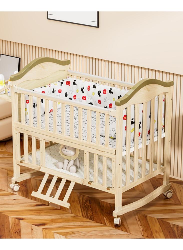 اختيار مثالي وعملي لغرفة أطفالك، سرير أنيق، مصنوع من الخشب الصلب لضمان الجودة، يتمتع بمساحة تخزين كبيرة في الجزء السفلي للاحتفاظ بالحفاضات، الملابس، الألعاب، وأدوات العناية الشخصية وغيرها. يحتوي على أربع عجلات قابلة للدوران بزاوية 360 درجة مع فرامل تضمن سهولة التنقل. يمكن تمديد هذا السرير لضمان مساحة كافية لطفلك عندما يكبر.