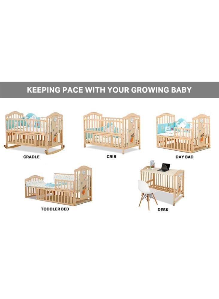 اختيار مثالي وعملي لغرفة أطفالك، سرير أنيق، مصنوع من الخشب الصلب لضمان الجودة، يتمتع بمساحة تخزين كبيرة في الجزء السفلي للاحتفاظ بالحفاضات، الملابس، الألعاب، وأدوات العناية الشخصية وغيرها. يحتوي على أربع عجلات قابلة للدوران بزاوية 360 درجة مع فرامل تضمن سهولة التنقل. يمكن تمديد هذا السرير لضمان مساحة كافية لطفلك عندما يكبر.