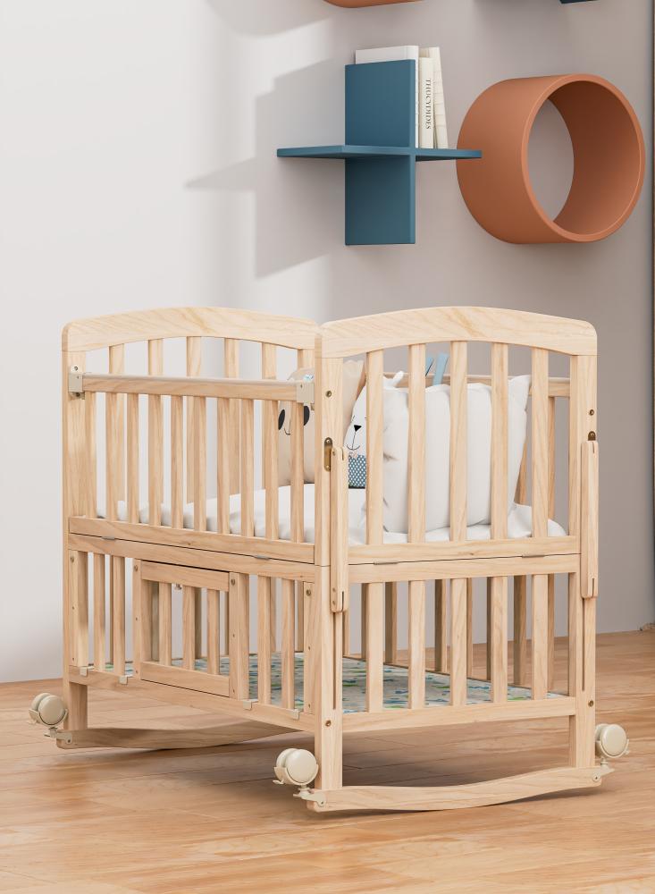 اختيار مثالي وعملي لغرفة أطفالك، سرير أنيق، مصنوع من الخشب الصلب لضمان الجودة، يتمتع بمساحة تخزين كبيرة في الجزء السفلي للاحتفاظ بالحفاضات، الملابس، الألعاب، وأدوات العناية الشخصية وغيرها. يحتوي على أربع عجلات قابلة للدوران بزاوية 360 درجة مع فرامل تضمن سهولة التنقل.