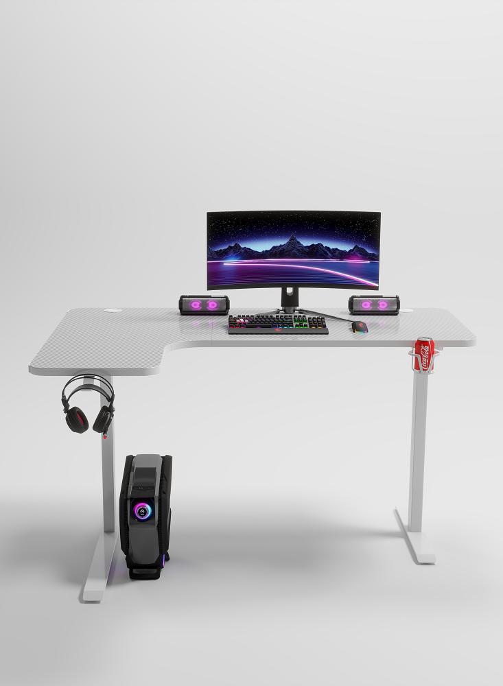 يتميز سطح طاولة الكمبيوتر للألعاب بأنه مجهز بإضاءة RGB، مع مجموعة متنوعة من الألوان مع جهاز تحكم