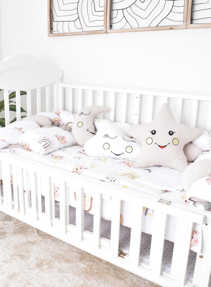 إضمني لطفلك المزيد من الحماية مع مسند حماية السرير هذا والذي يتمتّع بتصميم مبتكر مبطّن ومزيّن بتفاصيل مُطرّزة تُضيف إلى مظهره. سهل الإستخدام والتّركيب كما يحمي يدي صغيرك وقدميه من التعلّق بحاجز السرير. احرص على سلامة طفلك وحمايته باستخدام حامي سرير الأطفال المكون من 100٪ قطن.
