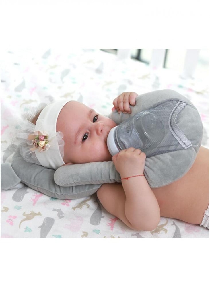 • تضمن الوسادة مكان مخصص يستطيع من خلاله الطفل امساك الرضاعة بنفسه جيدا دون ان يسقطها